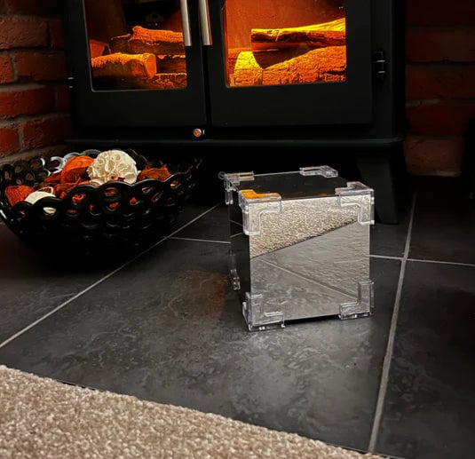 Transform any space with the Blossom Box. Initially resembling a refined mirror, it surprises with a breathtaking array of glowing tulips when switched on.